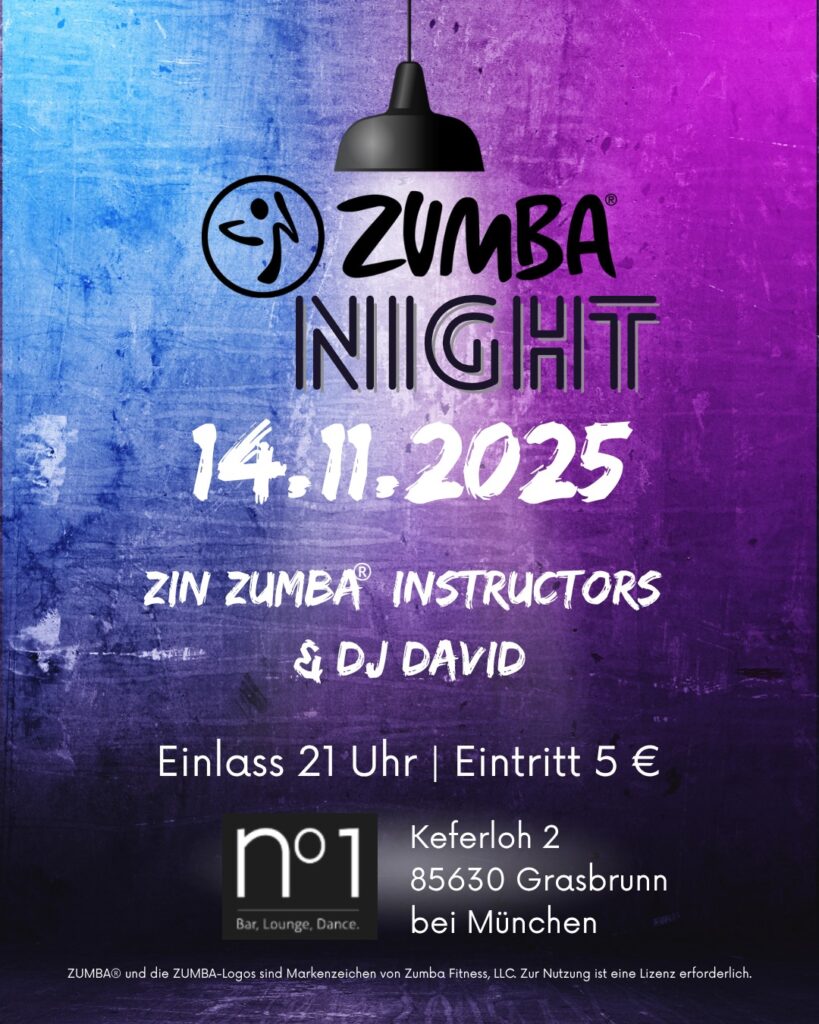 Unsere nächste öffentliche Veranstaltung ist am 14.11.2025 mit der ZUMBA NIGHT in der Bar N°1. Wir freuen uns auf Euer kommen.