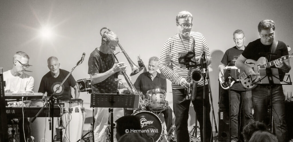 Die Band ist Spielfreude pur! Die Frontline bilden Elmar Krick (Tenorsax) und Werner Riedel (Posaune), unterstützt von einer schlagkräftigen Rhythmusgruppe um den neuen Schlagzeuger Marc Turiaux, Landshuts Tiefton-Geheimwaffe Martin “Tak” Thalhammer am Bass sowie Andi „Orgel” Wimmer an den Keyboards, Martin „Tube Screamer” Wessalowski an der Gitarre und Frank „Franko Franko” Haschler an der Percussion.