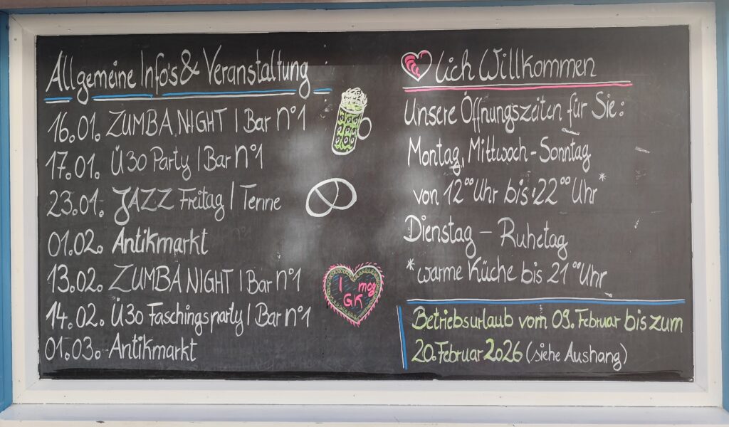 unsere allgemeinen aktuellen Öffnungszeiten in der Wintersaison 2025 sind folgende für Sie: