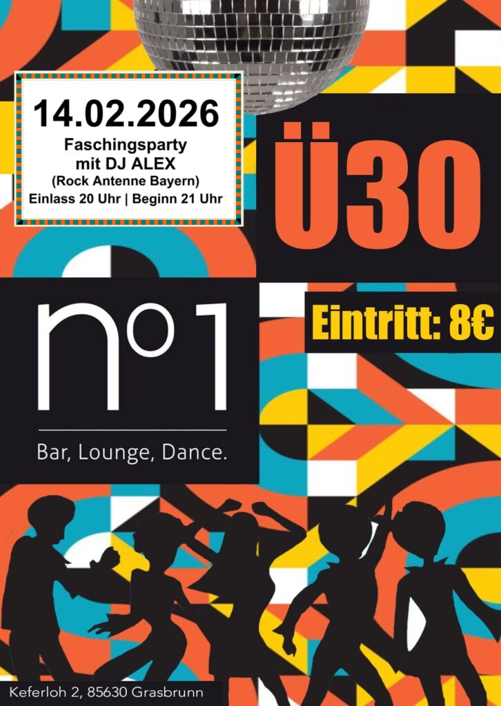 - am 14.02.2026 mit der XXXL Ü30 Party – Faschingsparty mit DJ Alex (Rock Antenne Bayern)